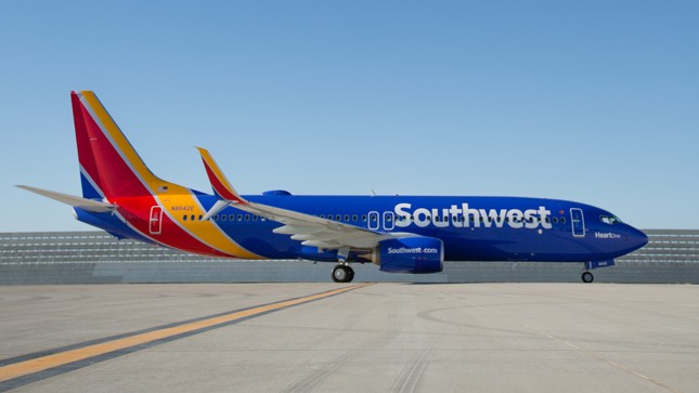 Blue is still the dominant color, but the planes will also have red, yellow and blue swooshes on the tail and wing tips. Southwest calls it ”Heart One”.