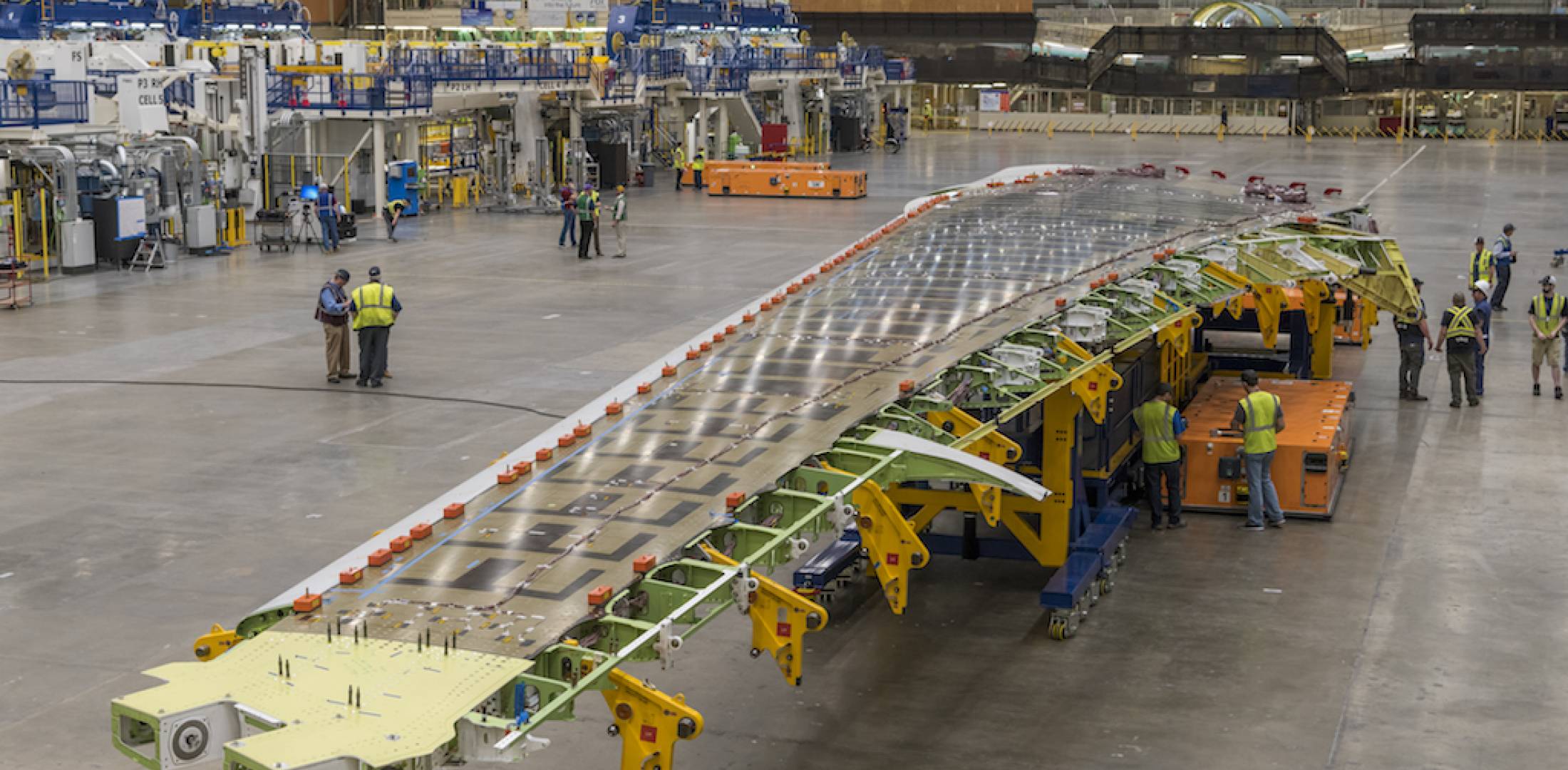Scheduled to complete the static test airframe by the end of the year, Boeing has moved the wings for the larger of the two 777X variants into letdown and systems installation, while at the 1.3-million-sq-ft composite wing center(CWC), the company has begun fabricating wings for the fifth airplane. So far, Boeing has sent four sets of wings out of the CWC and into spar assembly.