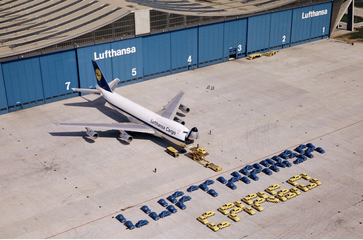 The 747 turned 50 on February 9th. Lufthansa salutes the aircraft by releasing a picture of one of their freighters a Boeing 747-230F, taken in 1972. Nickname:”Beetle Swallower”, as it had space for 72 VW Beetles.