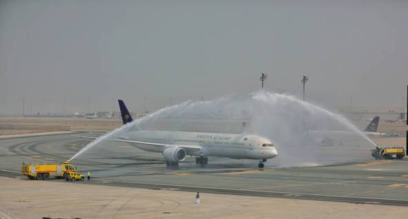 - Saudia the national flag carrier of the Kingdom of Saudi Arabia has welcomed its first Boeing 787-10 Dreamliner with a special ceremony that included a water cannon salute at Jeddah’s King Abdulaziz International Airport on Monday September 30.