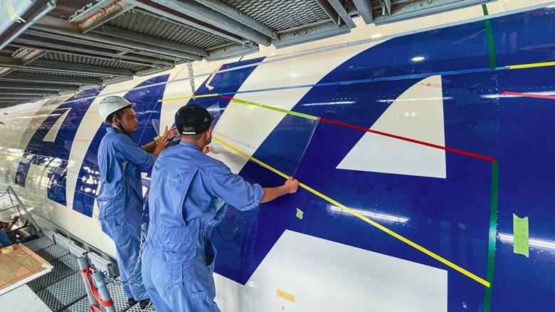 ANA adds that it intends to apply the film on a passenger 777-300ER(JA796A), which will enter service early next year. ANA worked with AeroShark developer Lufthansa Technik for the application of the film on its 777F.