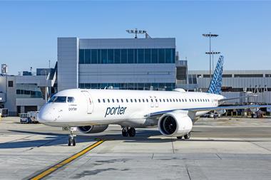 Porter has been aggressively acquiring E95-E2s to enable the formerly regional-focused carrier’s expansion across North America and into the Caribbean. It now operates 46 of the type, with 29 more on order and 25 covered by purchase options. Since introducing E195-E2s to its fleet in 2023, Porter has become the largest global operator of the twinjet.