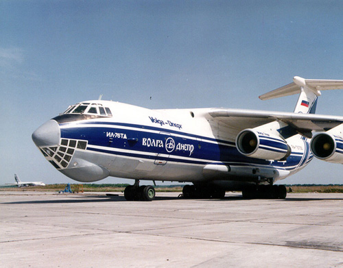 Extra loading equipment was brought in from Leipzig, Germany. Despite strong winds in Prestwick on the day of the loading, the technical crew on the IL-76TD-90VD aircraft was able to build the loading assembly for the huge pipe on the trailer and in the aircraft, fixing the pipes in the cradle and lifting it into the cargo hold.